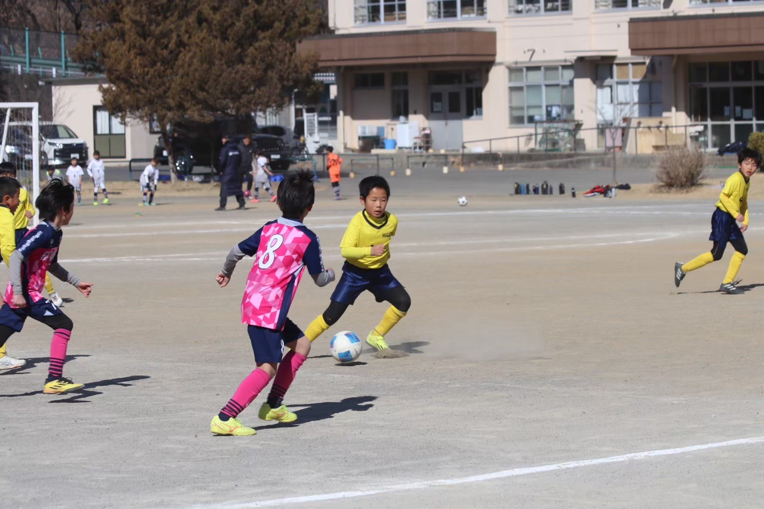 八王子市内で普段から交流頂いている8チームに加え市外の8チームを招待した、3年生最後の大きな大会に臨みました。先月のTOMASから大事な場面で決めきれない試合が続いていましたが、初戦では先週までの練習で試していた味方のパスコースを作り出す動きができ、少々ラッキーな先制点もあって、波に乗って試合を決めることができました。